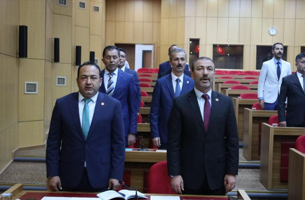 43 meclis üyesinin yer aldığı 25. Dönem İl Genel Meclisinin ilk toplantısında meclis divanı seçimi yapılarak görev dağılımı gerçekleştirildi. Saygı duruşunda bulunulması ve İstiklal Marşı’nın okunmasıyla başlayan toplantıyı tüzük gereği meclisin en yaşlı üyesi olan Mustafa Yüzüak yönetti.