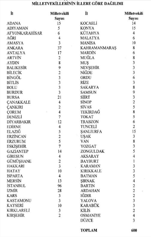 YSK tarafından Resmi Gazete'de yayımlanan açıklamada, milletvekili sayılarının nüfus artışına ve seçim bölgelerinin değişimine bağlı olarak güncellendiği belirtildi. Açıklamaya göre, Ankara 3, Bursa 2, İstanbul 3 ve İzmir 2 seçim bölgesine ayrıldı.
