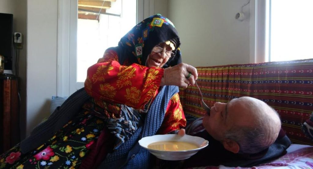 Sivas’ın Doğanşar ilçesine bağlı Çatpınar köyünde yaşayan 93 yaşındaki Gülsüm Karamuk’un doğuştan engelli olan 60 yaşındaki İsmail ve 53 yaşındaki Naci isimli oğulları konuşamıyor, yürüyemiyor ve akli dengeleri yerinde değil. Yaşamın zorluklarına rağmen yıllardır engelli evlatlarına sevgiyle bakan Gülsüm nine Evlatlarıyla birlikte mücadele etmekten hiç vazgeçmeyip, engelli evlatlarına her gün sevgi ve şefkatle bakarak gelininin de destekleriyle onların tüm ihtiyaçlarını karşılıyor. Evlatlarını bırakıp gidenler diğer dünyada cezalarını çekerler diyen Gülsüm nine; “İnsanın evladını bırakabilme gibi bir imkânı seçeneği olamaz. İnsan ciğerini bırakamaz. Evlatlar annelerin bir parçasıdır” dedi.
