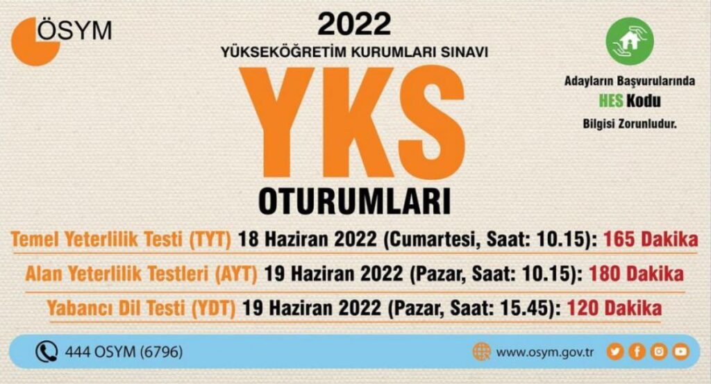 Sosyal medya hesabından üniversiteye giriş için YKS sınavını oluşturan üç oturumun başvurularının başladığını duyuran ÖSYM Başkanı Halis Aygün "Değerli adaylarımız, 18-19 Haziran 2022 tarihlerinde gerçekleştireceğimiz Yükseköğretim Kurumları Sınavı (2022-YKS) başvuru kılavuzu sitemizde https://osym.gov.tr yayınlanmıştır. Başvurularınızı 11 Şubat-7 Mart 2022 tarihleri arasında yapabilirsiniz." ifadelerini kullandı.