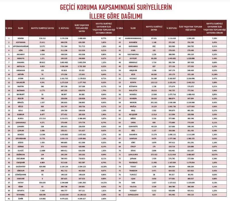 İşte illere göre Suriyeli sayısı..