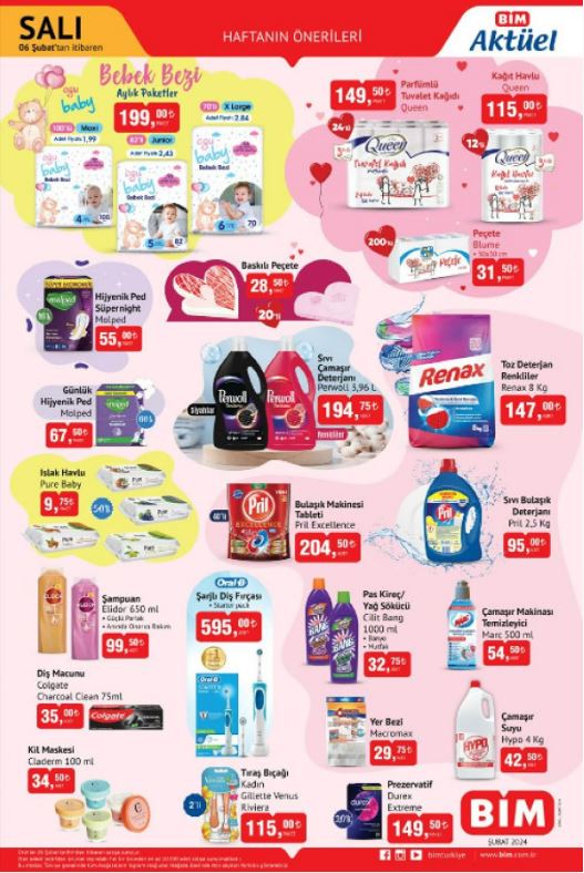Evin temizliğine önem verenler için ise şampuan, şarjlı diş fırçası, yer bezi, çamaşır suyu, çamaşır makinesi temizleyici, bulaşık makinesi tableti, sıvı bulaşık deterjanı, ıslak havlu, sıvı çamaşır deterjanı, toz deterjan ve baskılı peçete gibi ürünler indirimde!