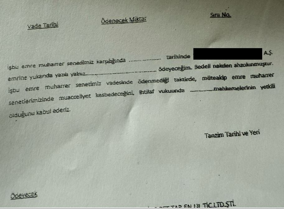 İhtarnameden bir hafta sonra, S.M. ve oğluna, bankanın daha önce kredi sürecinde imzalattığı boş senedin 187 bin TL olarak doldurulmuş haliyle icra takibi başlatıldığı bildirildi.