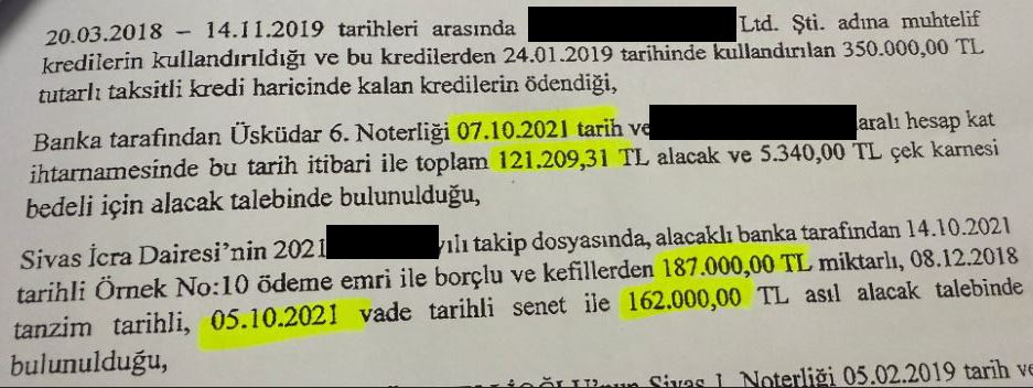Söz konusu krediye şirket sahibinin babası S.M. de kefil olarak imza attı. Kredi, ilk 28 ay boyunca düzenli ödendi. Ancak kalan 8 taksitlik süreçte firma mali sıkıntıya girince ödemelerde aksama yaşandı.