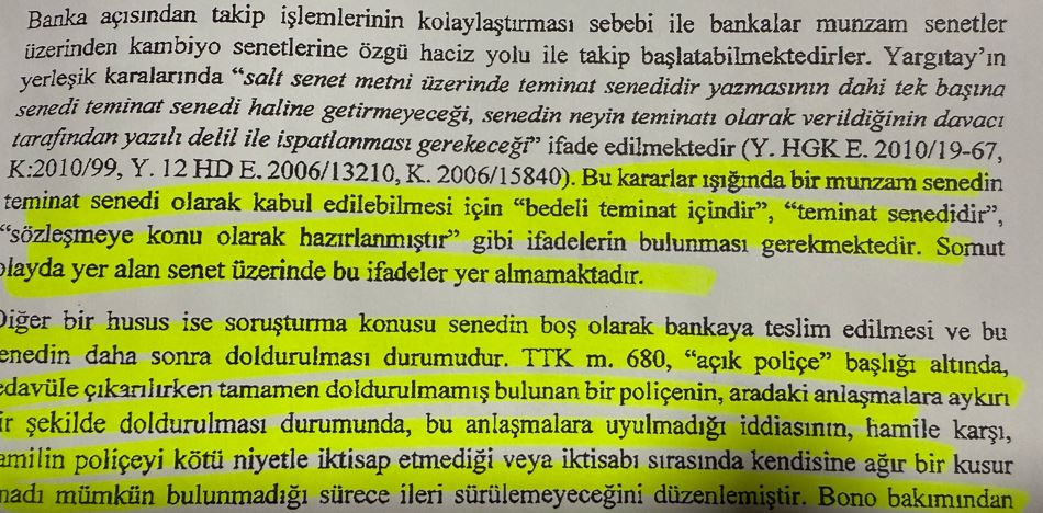 - “Senedin bu haliyle teminat senedi olarak değerlendirilmesi mümkün değildir.”