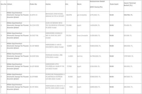 Araçlara yönelik teklifler ilk etapta kapalı zarf yöntemiyle alınacak. En yüksek teklifin, muhammen bedelin üzerinde olması durumunda açık artırma aşamasına geçilecek. İhale süreci TMSF'nin resmi internet sitesinden de takip edilebilecek.