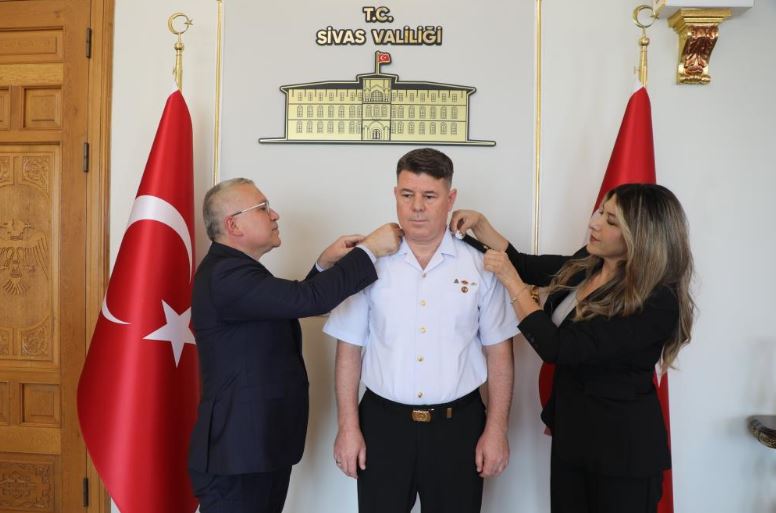 Albaylıktan tuğgeneralliğe terfi eden Sivas İl Jandarma Komutanı İdris Tataroğlu’nun apoletlerini eşi Fatma Tataroğlu ve Sivas Valisi Yılmaz Şimşek taktı.