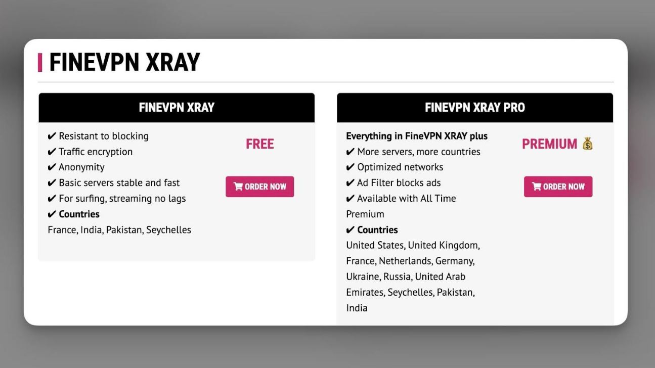Estonia, Tallinn — 27 Mart 2025 — Önde gelen VPN hizmet sağlayıcısı FineVPN, kullanıcı gizliliği, anonimlik ve engellemeye karşı direnç sağlamak amacıyla güçlü xRay protokolüne dayanan yeni VPN hizmetini duyurmaktan heyecan duyuyor. Bu yenilikçi ekleme, güvenli internet taraması, akış ve daha fazlası için ideal bir çözüm sunuyor.
