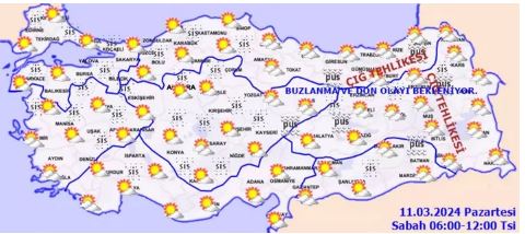 Doğu Karadeniz’in iç kesimleri ile Doğu Anadolu’nun kuzey ve doğusunun kar örtüsüne sahip eğimli yamaçlarında çığ tehlikesi bulunduğundan dikkatli ve tedbirli olunmalıdır.
