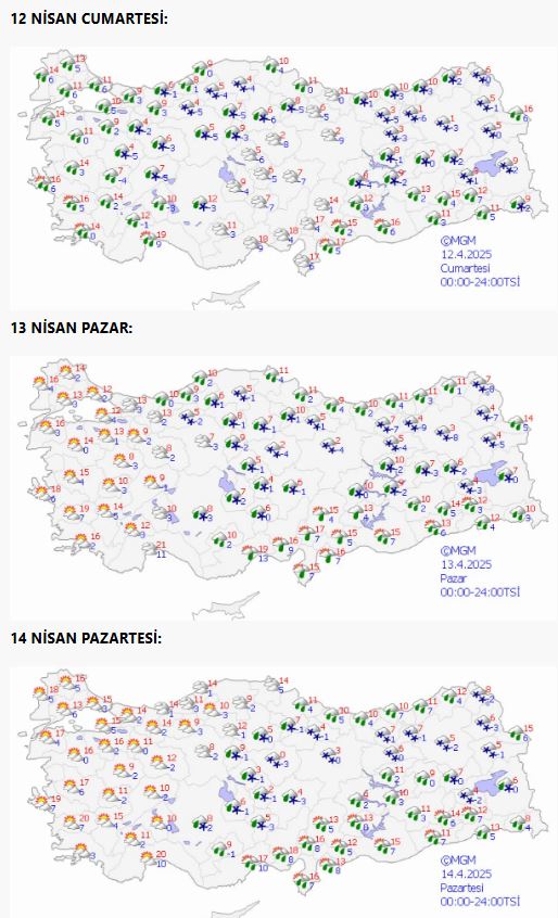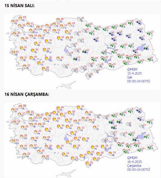 Meteoroloji verilerine göre hava sıcaklıkları hafta ortasına kadar şöyle seyredecek: