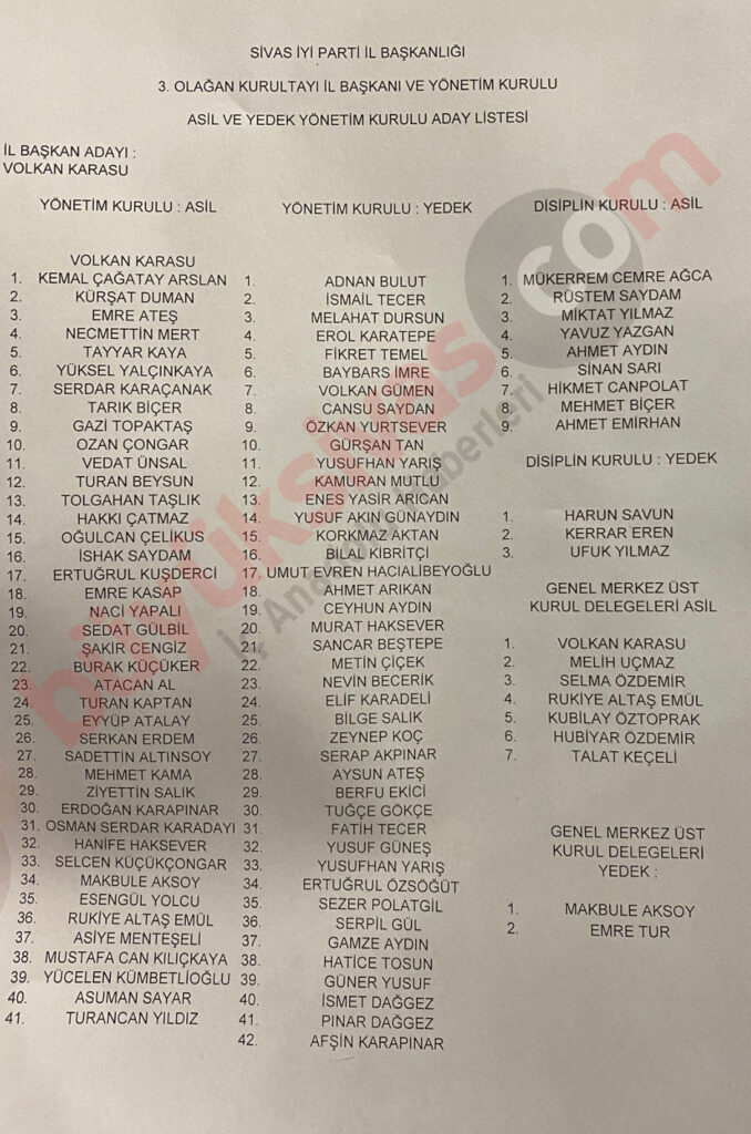 Kongrede Volkan Karasu başkanlığında seçilen yönetim kurulu, disiplin kurulu ve genel merkez üst kurul delegeleri ise şöyle;