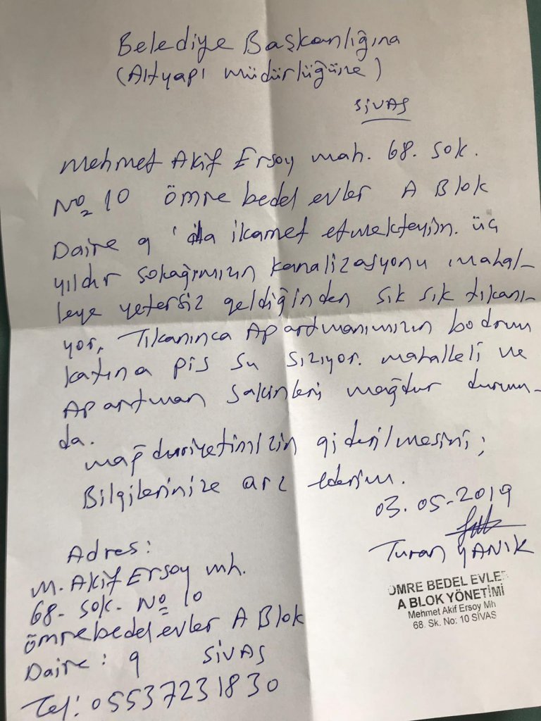 Ayrıca bir başka vatandaşın benzer bir konu ile alakalı ulaştırdığı dilekçe de şu şekildedir...