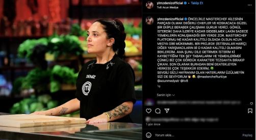 "Yarışma çok kaliteli keşke yarışmacılar da biraz öyle olsa" diyen Deniz'in uzun mesajı şu şekilde: