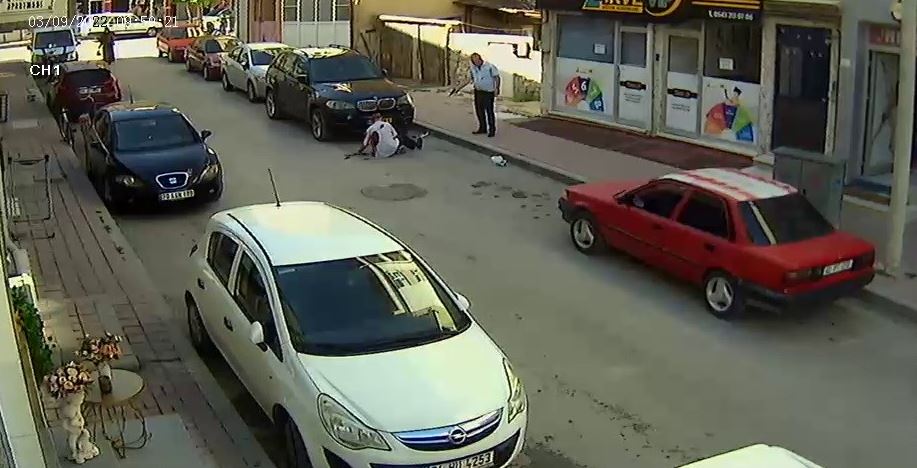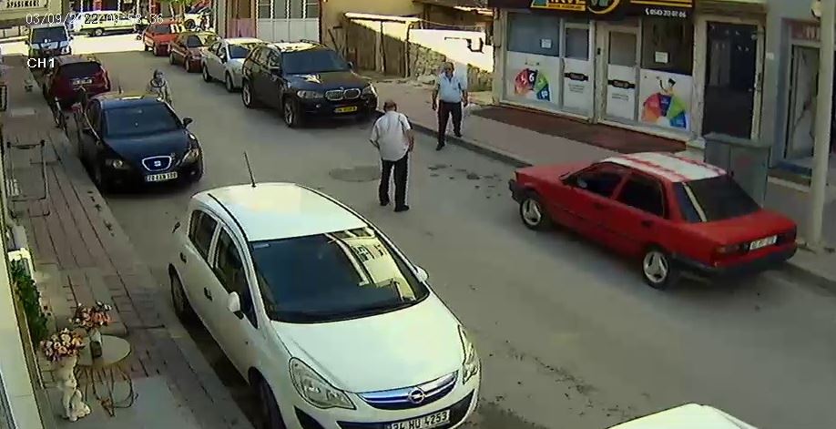 Husumetli olan Zekeriya K. ile Hayrettin A’nın birbirlerine bıçak ve silahla saldırarak yaralamasının dehşete düşüren görüntüleri ortaya çıktı. Bir işyerinin güvenlik kamerasına yansıyan görüntülerde, olayın yaşandığı sokak üzerindeki evine kaldırımdan yürüyerek gitmekte olan Hayrettin A., aynı sokakta yol ortasında yürüyen husumetlisi Zekeriya K. ile karşılaşarak tartışmaya başladı.