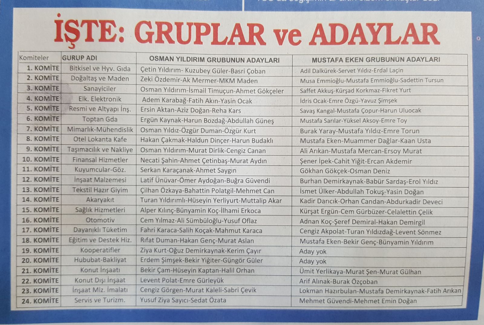 Mevcut Başkan Osman Yıldırım ve bir süredir aday olarak çalışmalarını sürdüren Mustafa Eken ile birlikte hareket eden ayrıca bireysel olarak aday olan komitelerin seçim heyecanı tamamlandı.