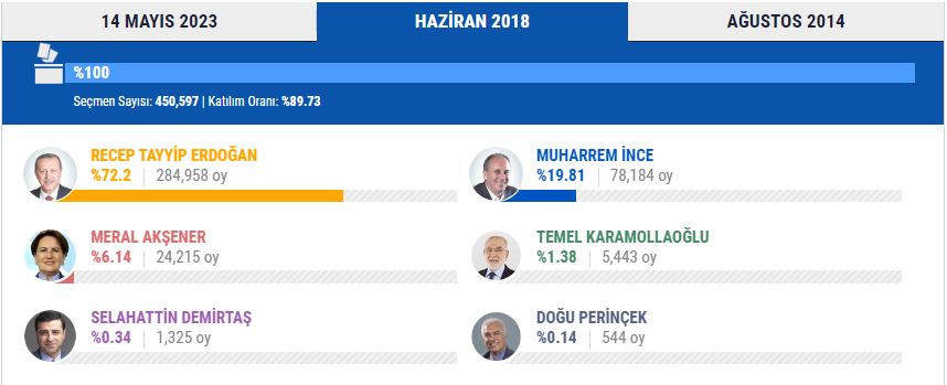2018 seçimlerinde Cumhurbaşkanı Adaylarına Sivas'ta Çıkan Sonuçlar;