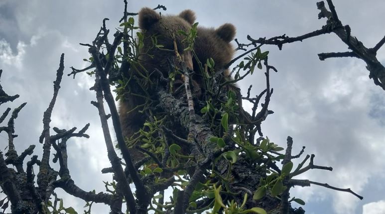 İlçeye bağlı Camikebir Mahallesi'nde yaşayan vatandaşlar, kırsalda bir armut ağacında 2 ayı yavrusu olduğunu fark etti.