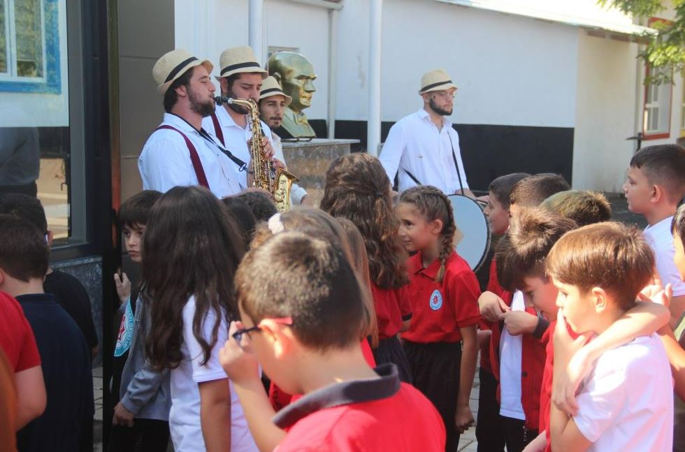 Konuşmaların ardından İlk, orta ve lise öğrencileri bando takımı ve müziği eşliğinde sınıflarına girerek dersbaşı yaptı. (İHA)