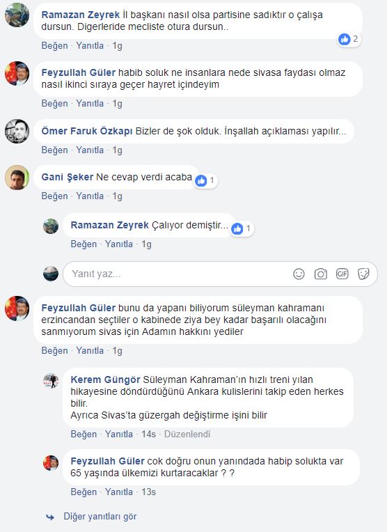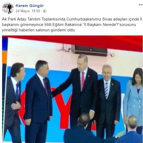 Sosyal medyanın trol hesaplarından K.G. ise tv de yayınlanan bir görüntüyü alarak "AK Parti Aday Tanıtım Toplantısında Cumhurbaşkanımız Sivas adayları içinde İl başkanını göremeyince Milli Eğitim Bakanına “İl Başkanı Nerede?” sorusunu yönelttiği haberleri salonun gündemi oldu." şeklinde bir mesaj paylaştı.