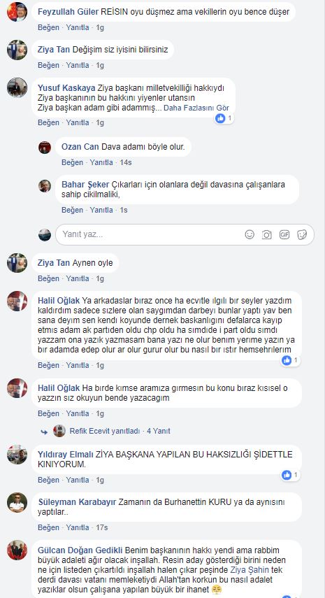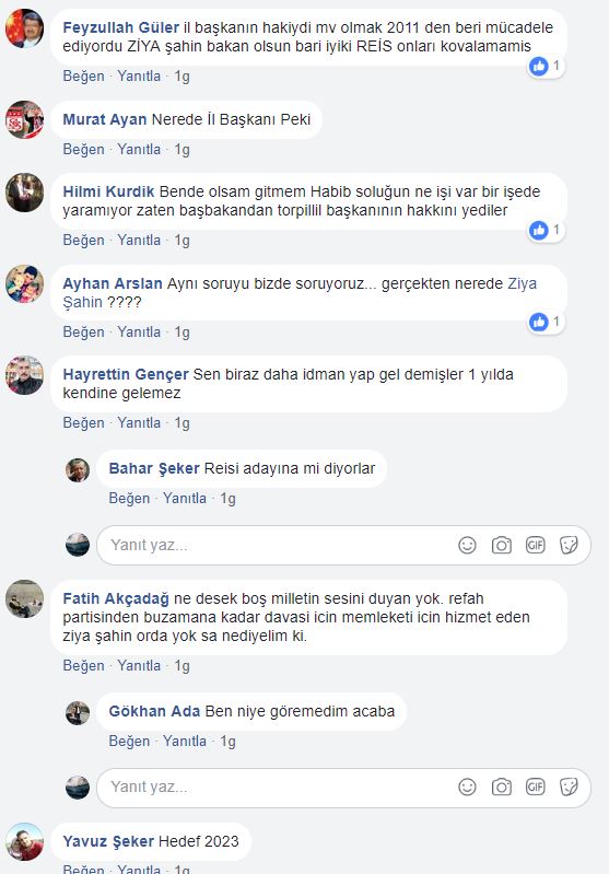 Cumhurbaşkanı Erdoğan'ın Ziya Şahin'i aday listesine koymamasının ardından şehirde bazı grupların ise, "Milletvekili olanlar Bakan olamıyor, Şahin'i bu nedenle listeye koymadı Cumhurbaşkanı Ziya Şahin'i Bakan yapacakmış, Ziya Şahin'i Belediye Başkan adayı yapacakmış" gibi şeyler söylediği de iddia ediliyor.