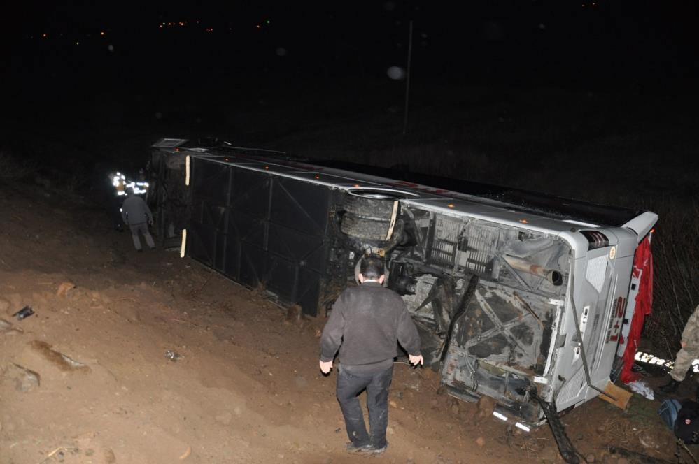 Sivas’ın Suşehri ilçesinde kontrolden çıkan yolcu otobüsü tarlaya uçtu. Kazada 39 kişi yaralandı.