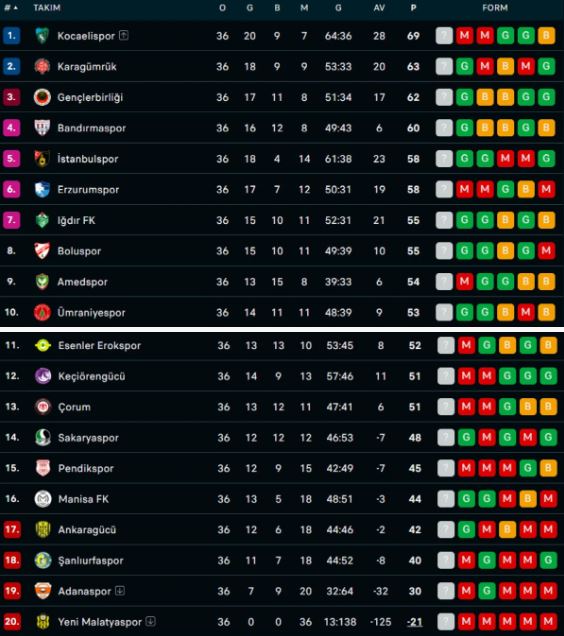 1. Lig’de 36. Hafta Tamamlandı! Süper Lig ve Küme Düşme Hattı Kızıştı!