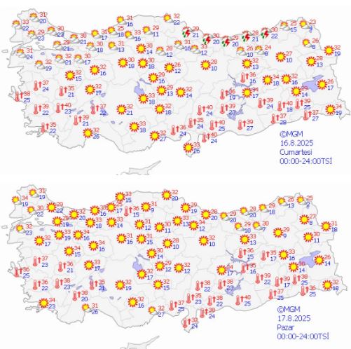 Çarşamba günü öğle saatlerinden itibaren Samsun, Ordu, Giresun, Trabzon ve Rize’nin yüksek kesimleri ile Van’ın doğusunda yerel sağanak ve gök gürültülü yağış görülecek. Diğer bölgelerde ise hava genellikle az bulutlu ve açık olacak.