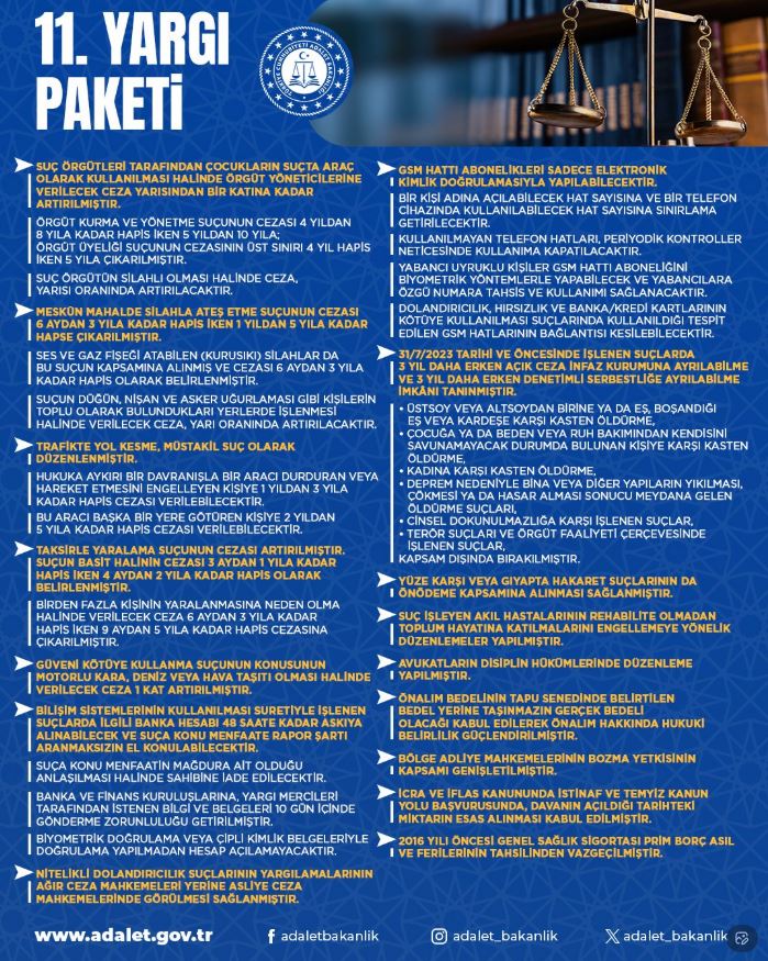 11. Yargı Paketi’nde infaz indirimi içeren 27’nci madde kabul edildi.. TBMM Genel Kurulu’nda kamuoyunda “11. Yargı Paketi” olarak bilinen Türk Ceza Kanunu ile Bazı Kanunlarda Değişiklik Yapılmasına Dair Kanun Teklifi’nin görüşmelerinde sona gelindi.