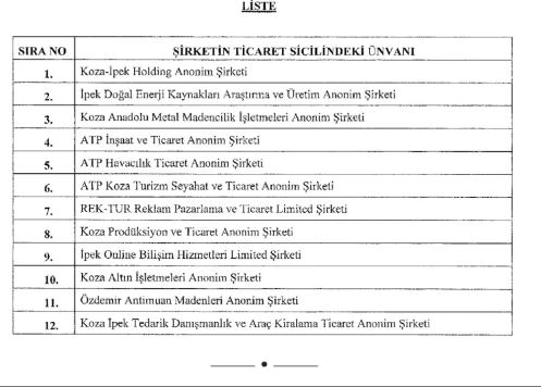 Koza Ipek Tedarik Danışmanlık ve Araç Kiralama Ticaret Anonim Şirketi.