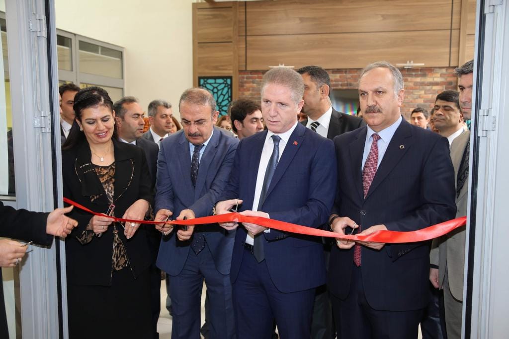 Vali Davut Gül ve beraberindekiler daha sonra sergide yer alan 32 fotoğrafı inceleyerek öğretmenler ve öğrencilerden bilgi aldı. (AA)