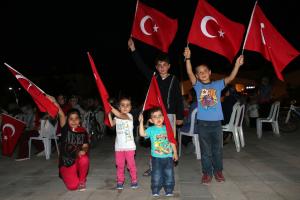 Sivas’ın Şarkışla ilçesinde 15 Temmuz Demokrasi ve Milli Birlik Günü kapsamında binlerce vatandaş demokrasi nöbetine devam etti. Programda Milli Egemenlik İlkokulu öğrencileri 15 Temmuz'da yaşananları canlandırdı.(AA)