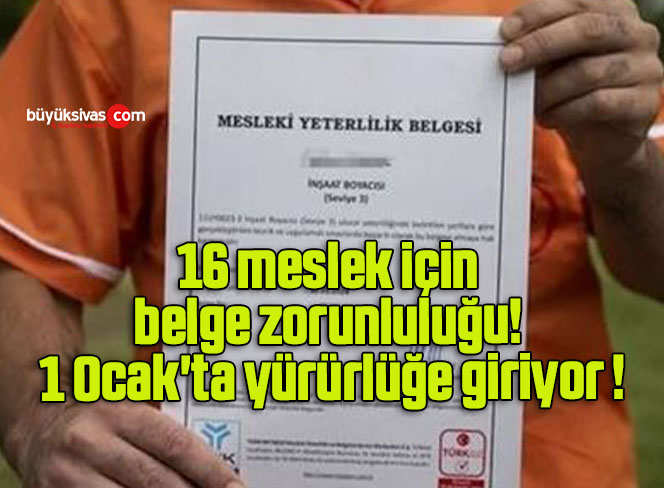 16 meslek için belge zorunluluğu! 1 Ocak'ta yürürlüğe giriyor !