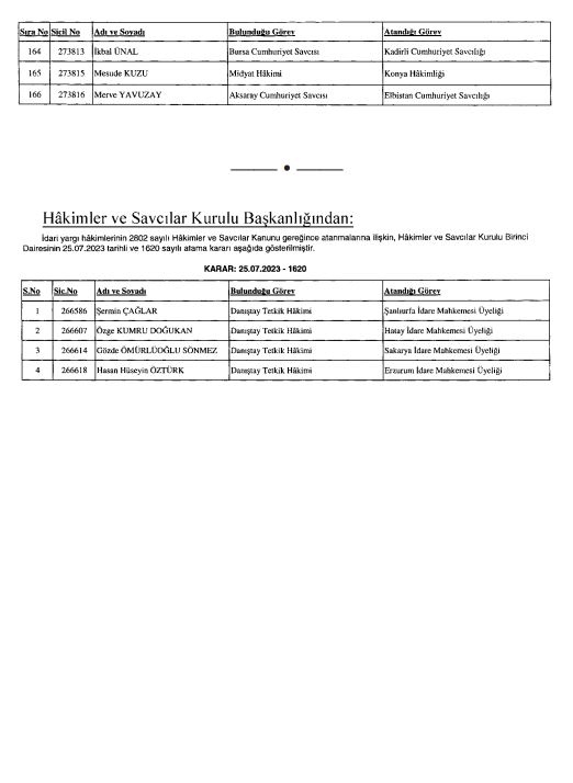 Hakimler ve Savcılar Kurulu'nun (HSK) adli ve idari yargıdaki atama kararnamesi Resmi Gazete'de yayımlanarak yürürlüğe girdi.