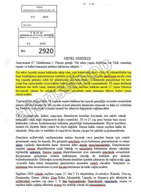 Referandum sürecinde Milletvekilli seçilme yaşının 18’ e indirilmesine kati suretle karşı çıkan CHP 2015 yılında Milletvekili seçilme yaşının 18’e indirilmesi ile ilgili olarak kanun teklifi verdiği iddia edildi.