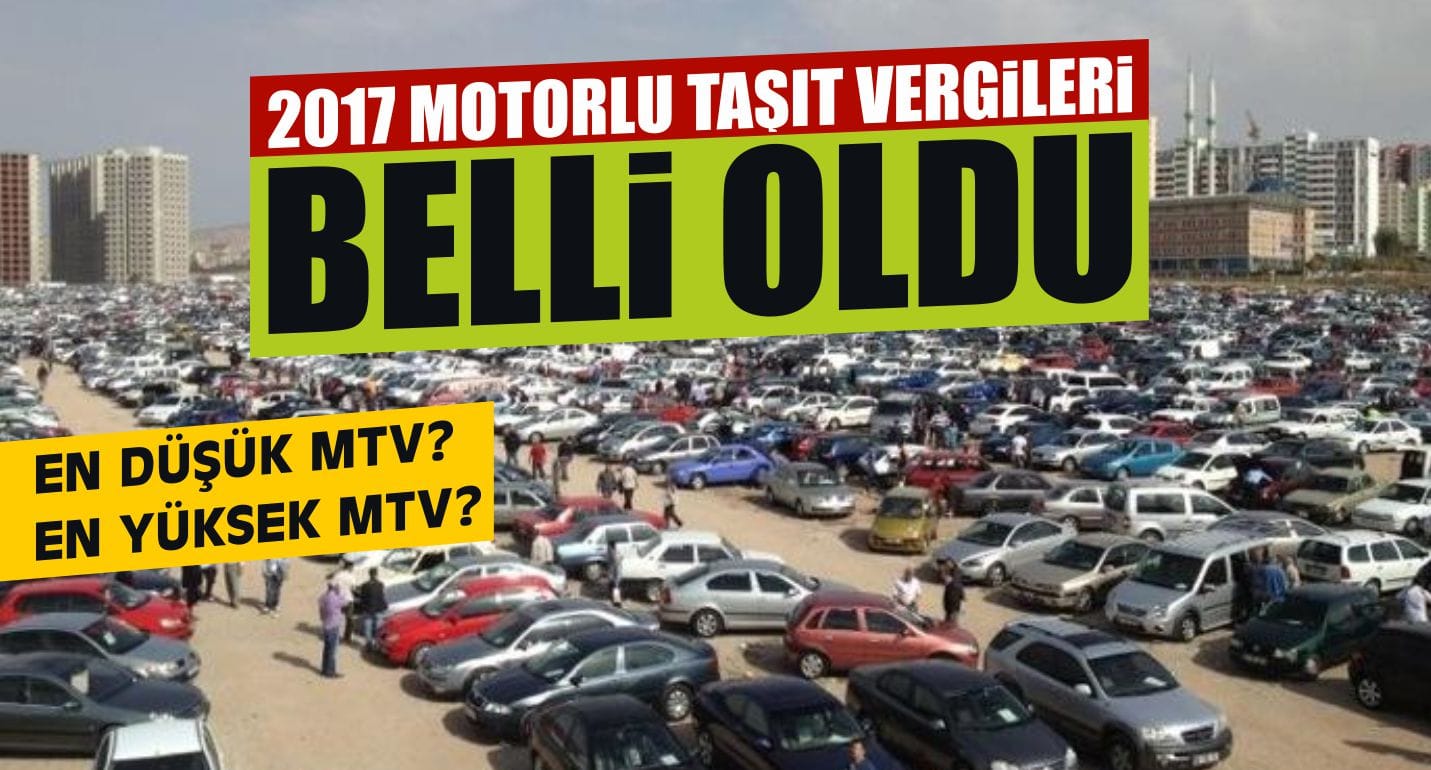 Motorlu taşıtlardan 2017 yılında alınacak Motorlu Taşıtlar Vergisi (MTV) vergisi en düşük 68 liraya, en yüksek de 23,586 liraya çıkarıldı.