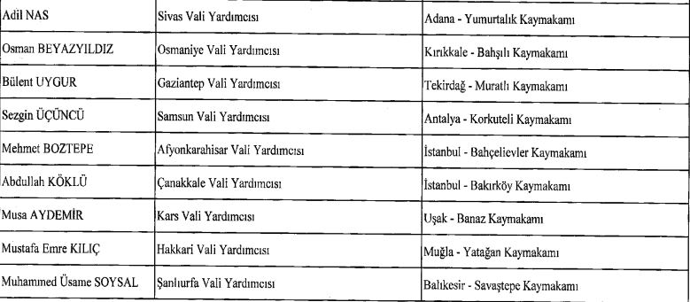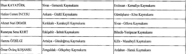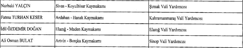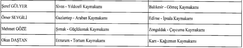 Sivas'ta görev yapan Vali Yardımcısı ve Kaymakamlardan görev yeri değişenler şu şekilde;