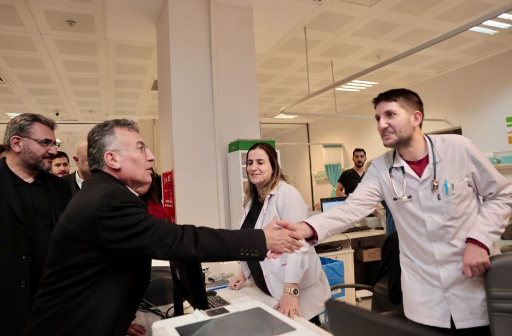Güler ve beraberindekiler, vatandaşların sağlığı için mesai mefhumu gözetmeksizin görev yapan sağlık çalışanlarına teşekkür ederek yeni yıllarını tebrik etti. (Halil Yavuz Canpolat)