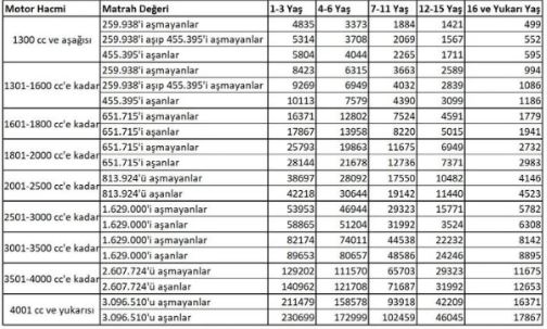En yaygın kullanılan silindir hacmi 1301 – 1600 arası yeni otomobillerde en düşük Motorlu Taşıtlar Vergisi (MTV) de 5 bin 851 liradan 8 bin 421 liraya çıktı. Otomobillerde uygulanan muayene ücreti 1821 liradan 2 bin 621 liraya yükseldi.