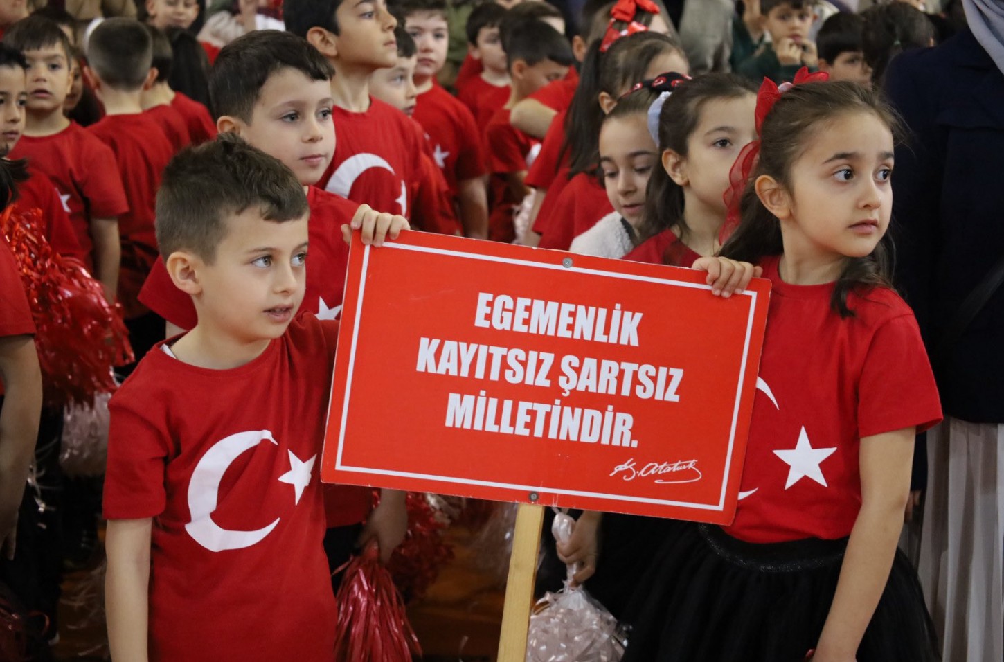 Gazi Mustafa Kemal Atatürk’ün çocuklara armağan ettiği bu anlamlı günde, geleceğin teminatı olan çocukların mutluluğu ve heyecanı salona yansıdı.