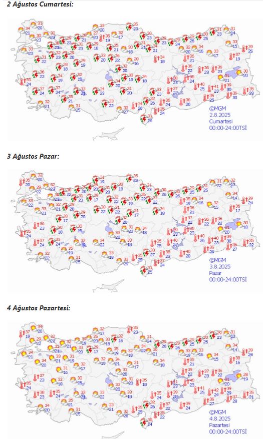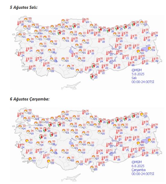 - İzmir: 35°C, az bulutlu ve açık, zamanla iç kesimlerde yerel sağanak ve gök gürültülü sağanak yağış görülebilir.