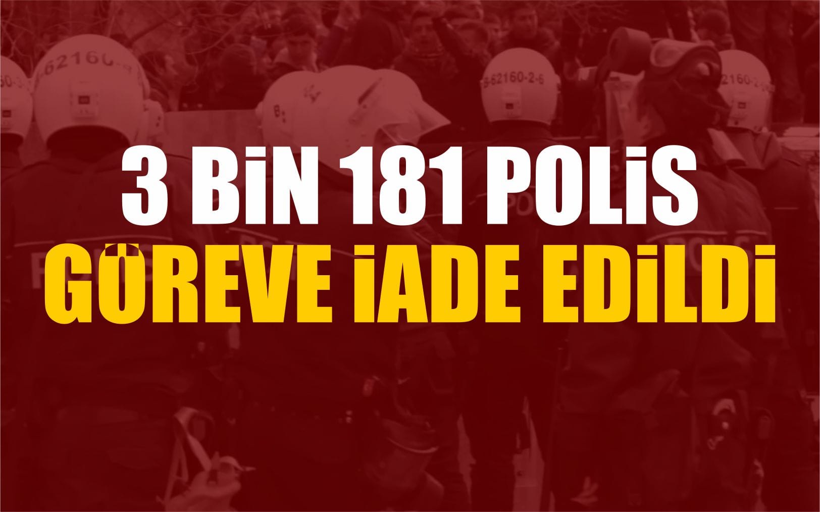 Emniyet Genel Müdürlüğünden (EGM) yapılan yazılı açıklamada 3 bin 181 Emniyet Teşkilatı mensubu görevine iade edildiğini aynı kapsamda ise 2 bin 205 kişinin ise görevden uzaklaştırıldığını belirtti.