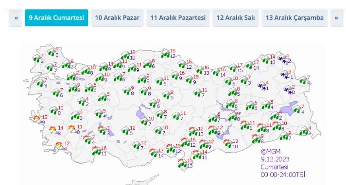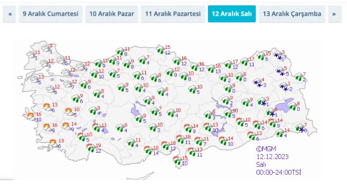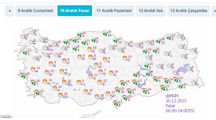 Meteoroloji Genel Müdürlüğü, günlük hava durumu tahmin raporunu yayımladı.