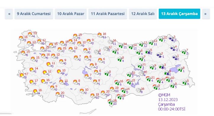 Meteoroloji Genel Müdürlüğü, günlük hava durumu tahmin raporunu yayımladı.
