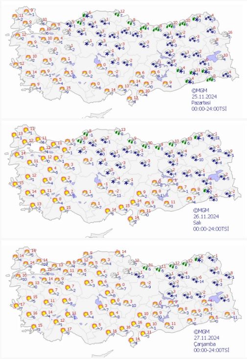 Afyonkarahisar, Amasya, Ankara, Antalya, Aydın, Balıkesir, Bilecik, Bursa, Çanakkale, Çankırı, Çorum, Denizli, Edirne, Eskişehir, İstanbul, İzmir, Kayseri, Kırklareli, Kırşehir, Kocaeli, Konya, Kütahya, Manisa, Muğla, Nevşehir, Niğde, Sakarya, Samsun, Sinop, Sivas, Tekirdağ, Tokat, Uşak, Yozgat, Aksaray, Karaman, Kırıkkale, Yalova illerinde 'sarı' uyarı verilirken Bolu, Kastamonu, Zonguldak, Bartın, Karabük, Düzce'ye ise 'turuncu' uyarı verildi.