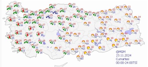 Meteorolojiden yayınlanan hava durumu tahminine göre 38 ile sarı kodlu uyarı yapılırken 6 il için turuncu kod verildi. Açıklama yurt genelinde kar, sağanak ve fırtınanın etkili olacağı belirtildi.