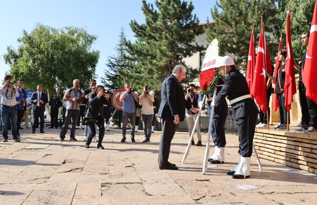 TBMM Başkanı Prof. Dr. Mustafa Şentop Sivas'ta., Sivas Valisi Sn. Dr. Yılmaz Şimşek, Sivas Belediye Başkanı Hilmi Bilgin ve 5. Piyade Eğitim Tugay Komutan V. Piyade Albay Önder Özcan, Atatürk Anıtına çelenk sundu.