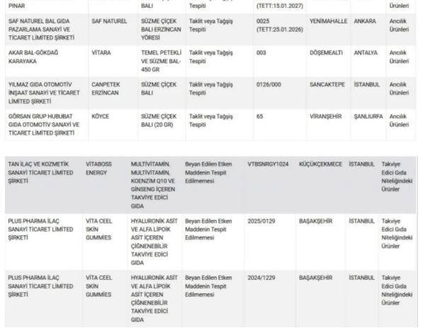 Sahtekârlık yalnızca et ürünleriyle sınırlı kalmadı. Bal ve zeytinyağı üretiminde de taklit ve tağşiş yapıldığı ortaya çıktı. Bazı firmaların zeytinyağlarına tohum yağı karıştırdığı, süzme bal olarak satılan ürünlerin ise sahte olduğu açıklandı. Bakanlık, “doğal”, “organik” ve “hakiki” ibareleriyle satılan ürünlere karşı vatandaşların daha dikkatli olması gerektiğini vurguladı.