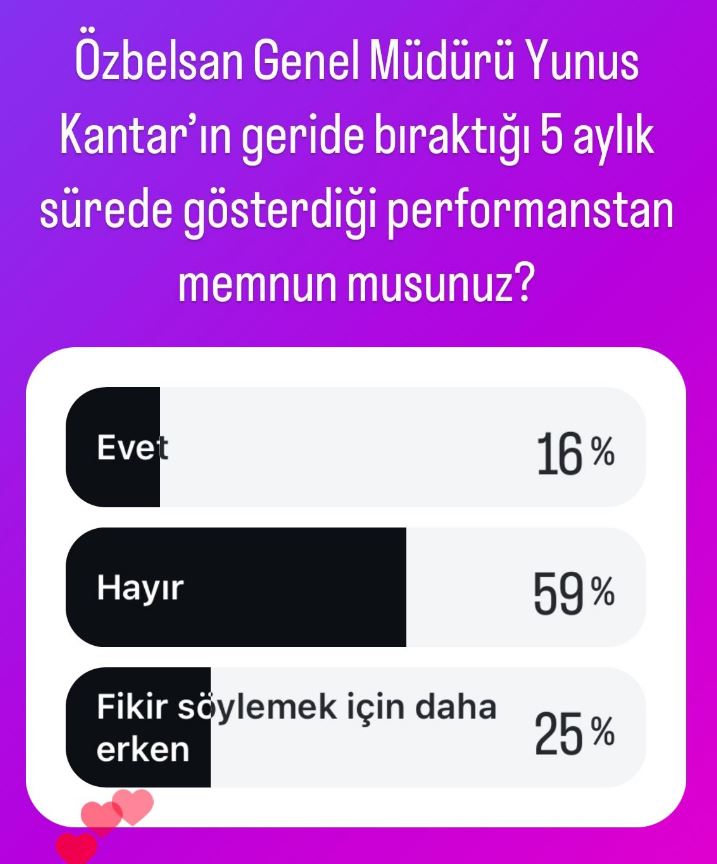 Bu düşük memnuniyet oranı, özellikle Başkan Uzun’un yakın çalışma arkadaşları olan Özbelsan AŞ Genel Müdürü Yunus Kantar ve Özel Kalem Müdürü Özer Gülbahar’ın yönetim tarzlarının etkili olduğu düşünüldü. Anket sonuçları, bu iki ismin Belediye yönetimi üzerindeki etkisinin vatandaşlar arasında olumsuz algılandığını ortaya koyuyor.