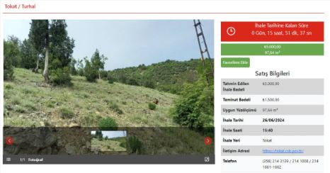 Tokat’ın Turhal ilçesinde 97,64 metrekarelik bir arsa satışa sunuldu. Arsanın ihalesi bugün saat 15.40’ta gerçekleşecek.