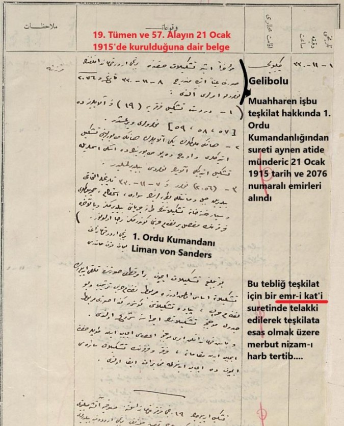 Öte yandan yapılan akademik çalışmalar, 57. Alay’ın kuruluşuna ilişkin bilinen bazı bilgilerin yeniden değerlendirildiğini ortaya koydu. Araştırmalara göre alayın, 1915 yılı Ocak ayı içerisinde Gelibolu’da teşkil edildiği ve kısa sürede savaşın seyrinde kritik rol oynadığı belirtildi.